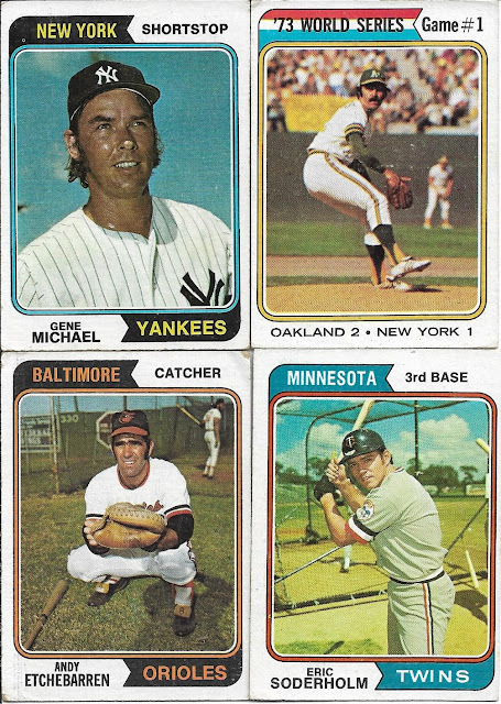 Last up is 4 cards from my 1974 Topps want list, a very pleasant surprise indeed! These cards bring my list down to just 101 cards to finish off the set. While I don't believe that 2019 is in the cards for finishing this set, I'm sure that sometime in 2020 I'll be scanning and showing off the entire set for everyone.