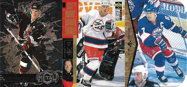 More Jets/Coyotes base cards which include the tough to pull die-cut SP insert card from the 94-95 SP set. After all these came in, the Tkachuk count has grown to 163 cards, not bad for a secondary collection. Still lots on the want list though!!